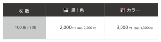 価格表ビジネス名刺
